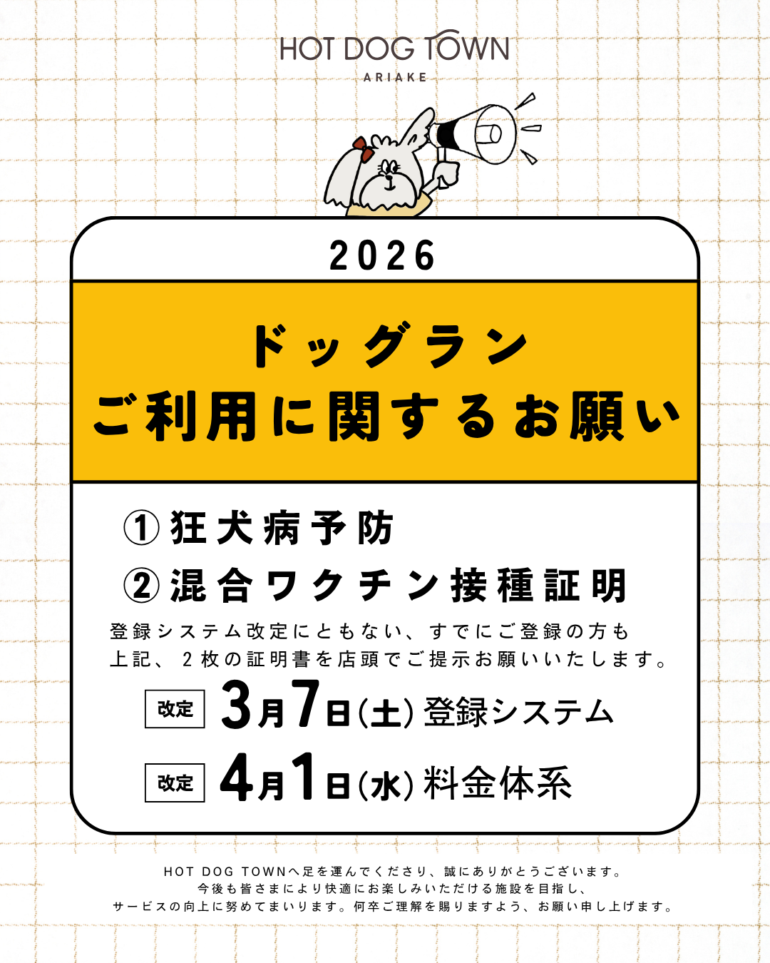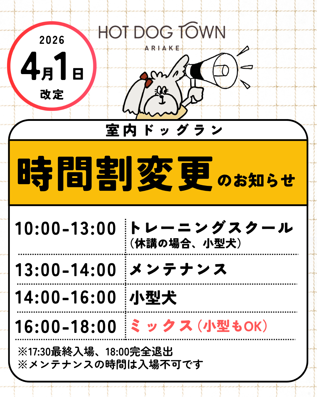 犬種により利用できる時間に制限があります。詳細は以下からご確認いただけます。